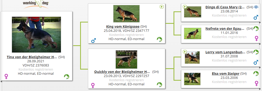 Mutter: *Tina von der Bietigheimer Hardt, ZAP, ED normal, HD normal , LÜW Typ0